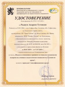 Тема: „Модели за поведение и тренинги за социално-емоционална подкрепа на ученици и педагогически специалисти в условия на кризи” – 09-11.07.2025 г. |